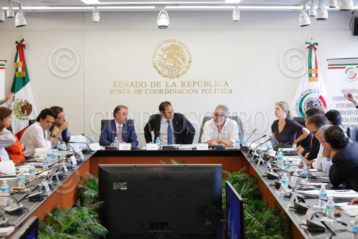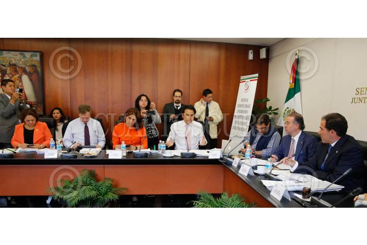 CIUDAD DE MÉXICO, 12ABRIL2016.- Los Senadores Zoé Robledo, Armando Ríos Piter, Raúl Cervantes Andrade, Pablo Escudero, Alejandro Encinas, y Marcela Torres Peimbert, participaron en la mesa de trabajo en comisiones unidas de Anticorrupción y Participación Ciudadana, de Justicia y de Estudios Legislativos Segunda, sobre la Ley General de Responsabilidades Administrativas, la propuesta de Ley 3 de 3, como parte del análisis de las leyes secundarias del Sistema Nacional Anticorrupción. FOTO: CUARTOSCURO.COM