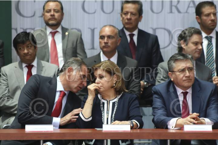 CIUDAD DE MÉXICO, 18JULIO2016.- Gabino Cué Monteagudo, gobernador de Oaxaca, Arely Gomez, procuradora general de la república y Luis Raúl González Pérez, titular de la CNDH durante la firma del decreto mediante el cual se promulgan las siete leyes para crear el Sistema Nacional Anticorrupción, entre ellas la Ley de Responsabilidades Administrativas, conocida como Ley 3 de 3. FOTO: SAÚL LÓPEZ /CUARTOSCURO.COM