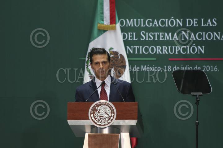CIUDAD DE MÉXICO, 18JULIO2016.- Enrique peña Nieto, presidente de México previo a la firma de la promulgación de las Leyes del Sistema Nacional Anticorrupción, pidió perdón a los mexicanos por el caso de la Casa Blanca, mencionó “Los mexicanos nos sentimos lastimados por la corrupción de servidores públicos y de particulares, la corrupción es un cáncer. El llamado caso de la Casa Blanca, lastimó la embestidura de la presidencia, por lo que pido perdón”. Al término de su discurso firmó el decreto mediante el cual se promulgan las siete leyes para crear el Sistema Nacional Anticorrupción, entre ellas la Ley de Responsabilidades Administrativas, conocida como Ley 3 de 3. FOTO: SAÚL LÓPEZ /CUARTOSCURO.COM