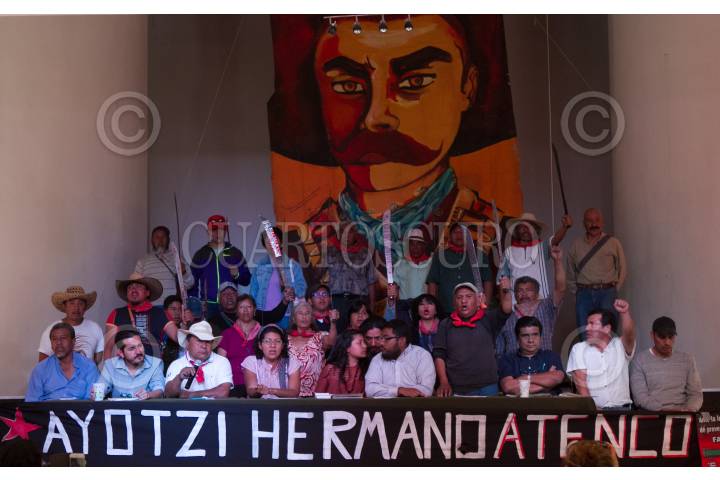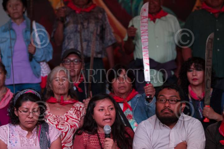 CIUDAD MÉXICO, 28MARZO2016.- Organizaciones sociales del Estado de México ofrecieron una conferencia de prensa para manifestar su rechazo a la llamada Ley Atenco, que fue promulgada el 18 de marzo por el gobierno de esa entidad. La Ley que Regula el Uso de la Fuerza Pública fue una iniciativa del gobernador Eruviel Ávila, enviada en diciembre de 2015 al Congreso estatal, y regula el uso de la fuerza en el Estado de México y permite que los elementos de seguridad pública disuelvan manifestaciones y protestas consideradas "ilegales", incluso, usando armas letales de ser necesario. Los inconformes advirtieron que realizarán manifestaciones pacificas para revertir la llamada "Ley Eruviel". FOTO: MOISÉS PABLO /CUARTOSCURO.COM