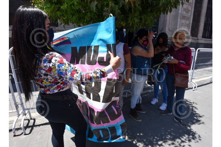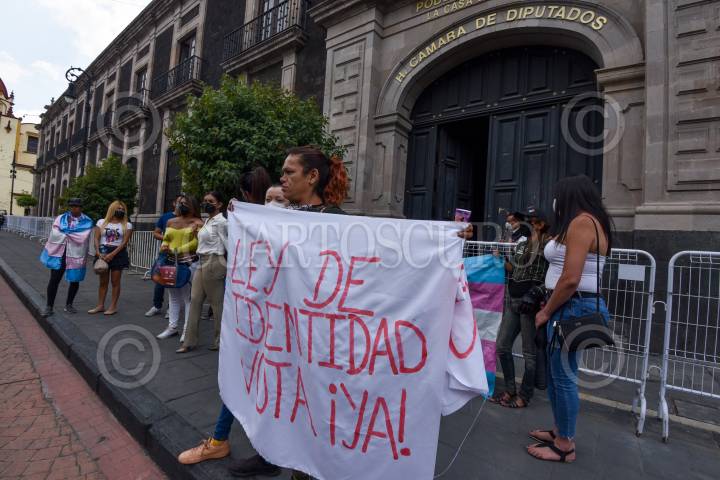 Mujeres trans realizan un plantón en la Cámara de Diputados para exigir la aprobación de la Ley de Identidad de Género.