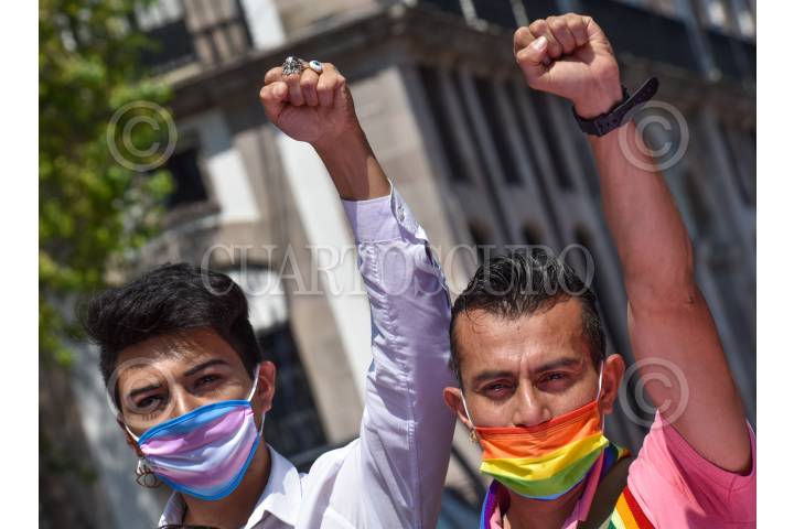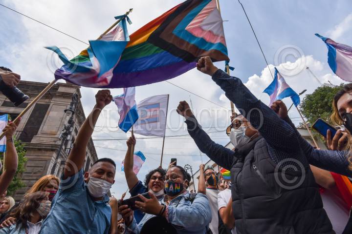 Integrante de la Comunidad LGBTTTIQ celebraron afuera de la Cámara de Diputados del Estado de México la aprobación de la Ley de Identidad de Género por mayoría.