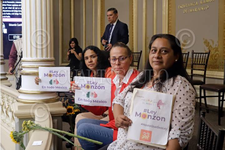 Mujeres aplaudieron la aprobación de la Ley Monzón y Ley Malena por el Congreso de Puebla, la primera le quita la patria potestad a ex parejas que ejercen violencia y la segunda castiga como tentativa de feminicidio los ataques con ácido.