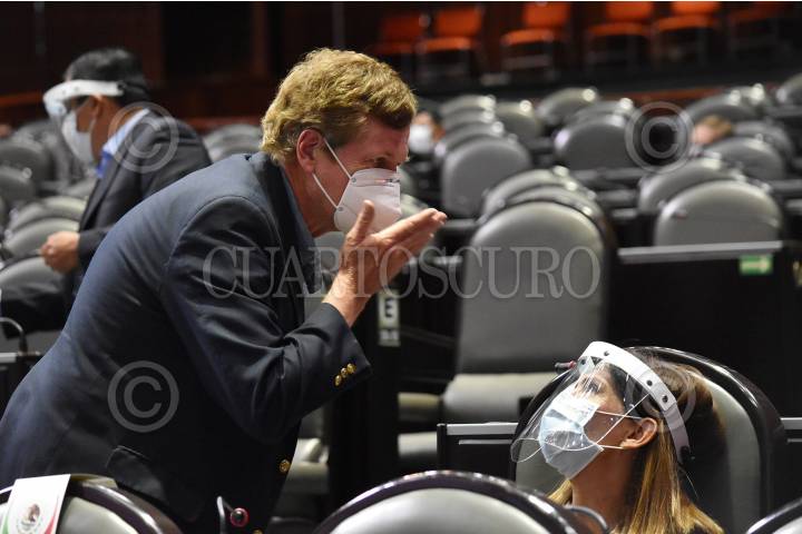 El diputado panista Juan Carlos Romero Hicks usó cobrebocas durante la sesión.