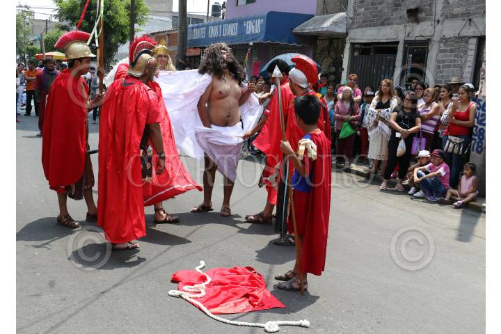 CIUDAD DE MÉXICO, 29MARZO2018.- Ante actos donde se niega la participacion a jóvenes de barrios de Iztapalapa para participar en actividades de la semana santa por parte del comite organizador Cossiac, algunas personas realizaron su representación de la Pasion de Cristo en barrios aledaños como es el caso de la colonia Leyes de Reforma que se ubica a pocos minutos de la sede delegacional. FOTO: SAÚL LÓPEZ /CUARTOSCURO.COM
