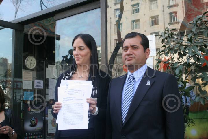 MÉXICO D.F., 08FEBRERO2011.- Lía Limón, diputada local del PAN y su dirigente local Obdulio Ávila, presentarón una denuncia administrativa en contra del presentó una denuncia administrativa contra el secretario de Obras y Servicios, Fernando Aboitiz, por la presunta compra irregular de 76 distintos materiales para construcción ante la Contraloría del GDF. FOTO: MOISÉS PABLO/CUARTOSCURO.COM