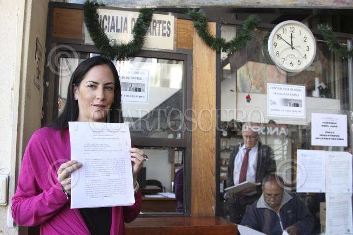 MÉXICO, D.F., 19DICIEMBRE2011.- La diputada Lía Limón presentó una denuncia administrativa ante la Contraloría General de la ALDF para exigir que se haga pública la información sobre el padrón de proveedores, convenios y contratos celebrados para dicho fin con las empresas “Proyecto Digital” y “Productos Metálicos Steele”. FOTO: IVÁN STEPHENS/CUARTOSCURO.COM