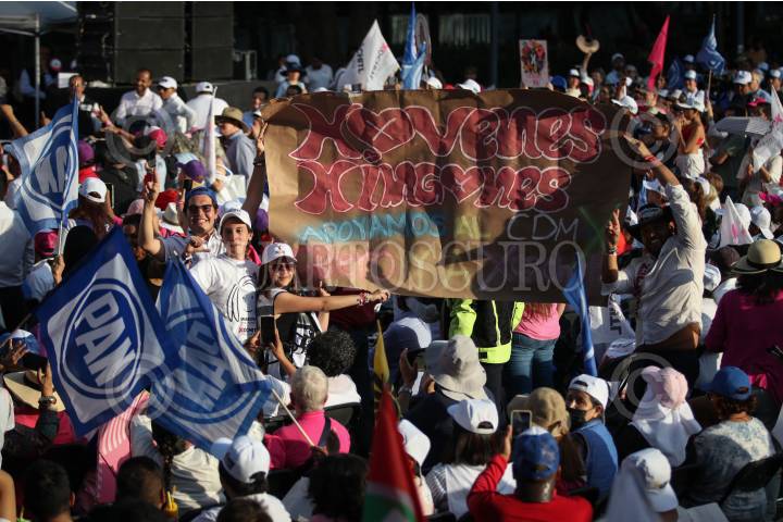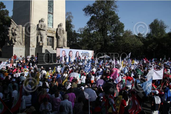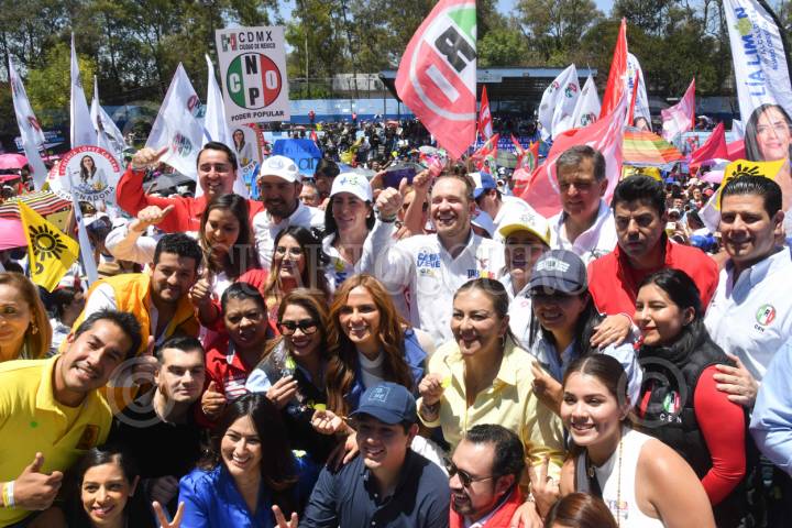 CIUDAD DE MÉXICO, 21MAYO2024.- Xóchitl Gálvez, Santiago Taboada y Lía Limón candidatos de la coalición Va por México por la presidencia, jefatura de gobierno y alcaldía durante evento en el parque La bombilla. FOTO: ANDREA MURCIA /CUARTOSCURO.COM
