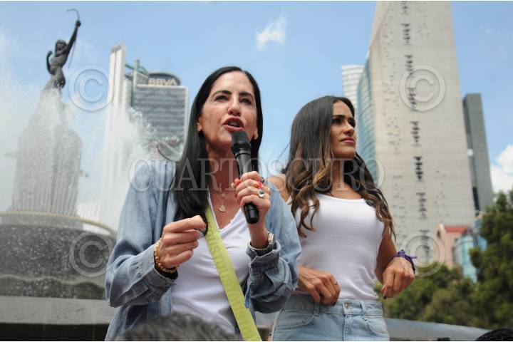 CIUDAD DE MÉXICO, 18AGOSTO2024. - Lía Limón, alcaldesa de Álvaro Obregón, acompañó esta mañana a Alessandra Rojo de la Vega, durante su concentración con sus simpatizantes. FOTO: DANIEL AUGUSTO /CUARTOSCURO.COM