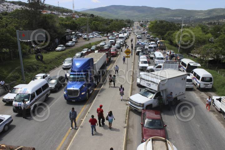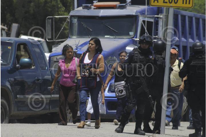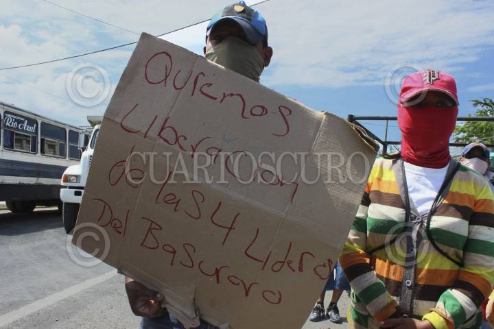 CHILPANCINGO, GUERRERO 29 JUNIO 2015.- Pepenadores del basurero municipal bloquearon la carretera federal México – Acapulco, a la altura de la colonia La Cinca, para exigir a la policía comunitaria del Frente Unidos por la Seguridad y de desarrollo del Estado de Guerrero (FUSDEG) y al gobierno del estado su intervención, para la liberación de sus compañeros. FOTO: JOSÉ I. HERNÁNDEZ /CUARTOSCURO.COM