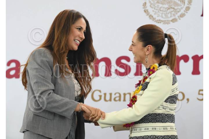 LEÓN, GUANAJUATO, 05SEPTIEMBRE2025.- Libia Denisse García Muñoz Ledo, gobernadora de Guanajuato, y Claudia Sheinbaum Pardo, presidenta de México, durante el evento La Transformación Avanza cómo parte de su gira con motivo de su primer año de gobierno. FOTO: PRESIDENCIA/CUARTOSCURO.COM