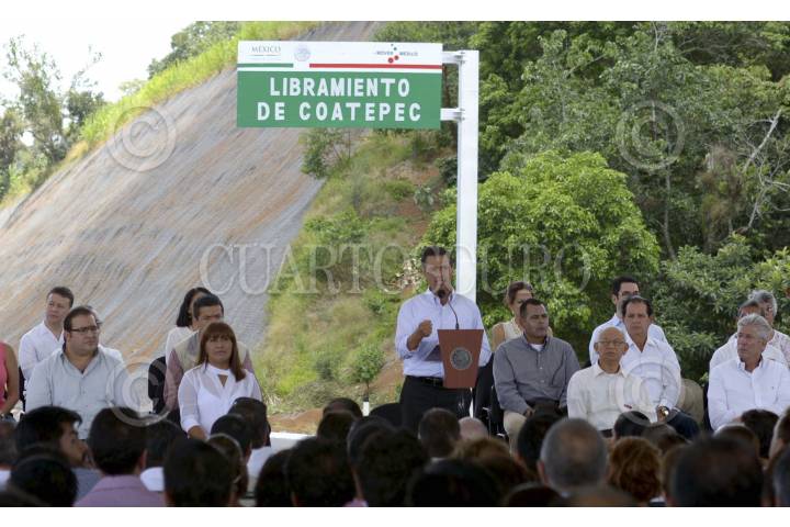 COATEPEC, VERACRUZ, 05AGOSTO2014.- El Presidente Enrique Peña Nieto entregó hoy el Libramiento de Coatepec en este estado, donde aseguró que el Gobierno de la República tiene como objetivo la modernización, entre otros, de los puertos de Veracruz, Tuxpan, Manzanillo, Lázaro Cárdenas y Altamira; y en materia de infraestructura carretera se construirán 46 autopistas. FOTO: PRESIDENCIA /CUARTOSCURO.COM