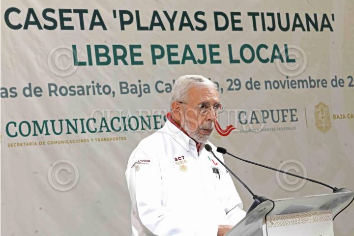 Jorge Arganis Díaz Leal, secretario de Comunicaciones y Transportes; durante el evento Caseta "Playas de Tijuana", Libre Peaje.