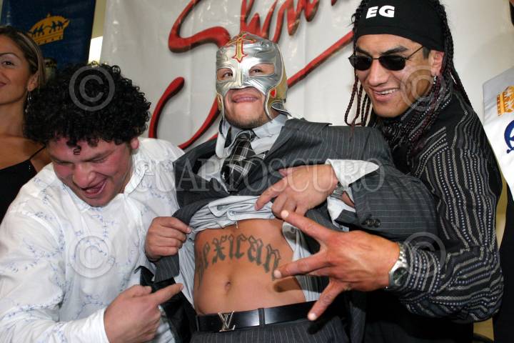 MEXICO, D.F., 11ENERO2006.-Los luchadores Rey Misterio, Super Crazy y Psicosis, ofrecieron una conferencia de prensa sobre las funciones de lucha libre americana de la WWE con las estrellas de la SmackDown Live Tour que se presentarán el próximo 19 de Enero en el Palacio de los Deportes. FOTO: Moisés Pablo/CUARTOSCURO.COM