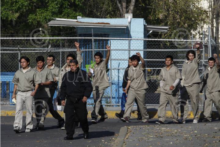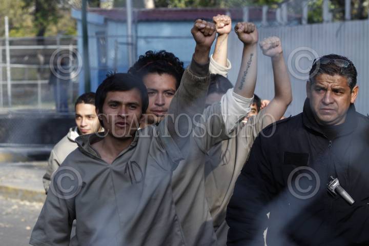 MÉXICO, D.F., 09DICIEMBRE2012.- 56 jóvenes que permanecían dentro del Reclusorio Norte después de haber sido arrestados durante las manifestaciones en contra de la toma de protesta del presidente Enrique Peña Nieto, salieron esta mañana luego que el juez 47 penal ordenara su liberación. FOTO: RODOLFO ANGULO /CUARTOSCURO.COM