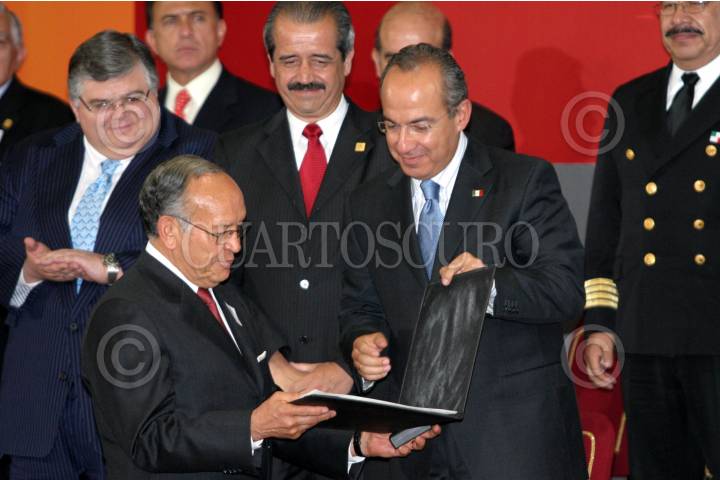 MÉXICO, D.F., 20ABRIL2007.- Felipe Calderón Hinojosa, Presidente de la República le entregó la condecoración "Dr. Eduardo Liceaga" a el doctor Ruben Argüero Sánchez, durante la ceremonia de instalación del Consejo de Salubridad General en la residencia oficial de los Pinos. FOTO: MOISÉS PABLO/CUARTOSCURO.COM