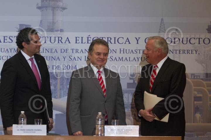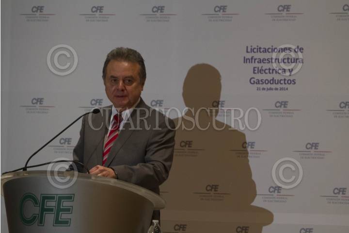 MÉXICO, D.F., 21JULIO2014.- Pedro Joaquín Codwell, titular de la Secretaria de Energía, acompañado de Enrique Ochoa Reza, Director General de la Comisión de Electricidad y Federico Reyes Heroles, Presidente del Consejo Rector Transparencia Mexicana, durante la conferencia donde se dieron a conocer los anuncios de nuevas licitaciones para infraestructura y gasoductos de la CFE. FOTO: GUILLERMO PEREA /CUARTOSCURO.COM