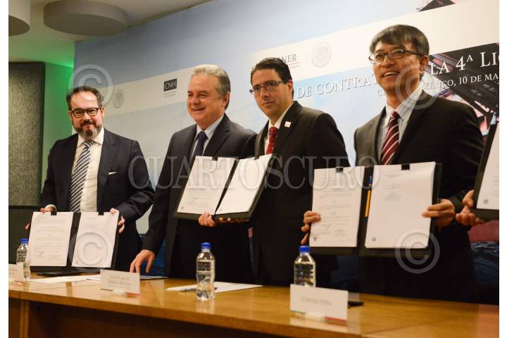 CIUDAD DE MÉXICO, 10MARZO2017.- A nombre del Estado Mexicano, la Comisión Nacional de Hidrocarburos (CNH) suscribió hoy siete Contratos bajo la modalidad de Licencia para la Exploración y Extracción de Hidrocarburos en aguas profundas, localizados en la provincia petrolera del Golfo Profundo. Se trata de las Áreas Contractuales 1, 2 y 4 de Cinturón Plegado Perdido y 1, 3, 4 y 5 de la Cuenca Salina, correspondientes a la Licitación Pública Internacional CNH-R01-L04/2015, con las empresas que resultaron ganadoras en dicho proceso licitatorio efectuado el pasado 5 de diciembre de 2016. FOTO: CORTESÍA /CUARTOSCURO.COM