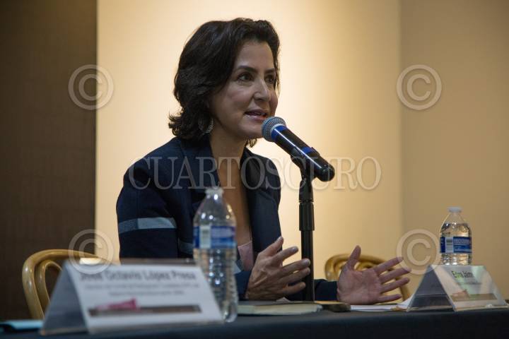 CIUDAD DE MÉXICO, 10OCTUBRE2018.- Edna Jaime, Directora General de México Evalúa durante la presentación del estudio "Ojos a la Obra: Tres Casos de Contrataciones Públicas" donde se habló acerca de las licitaciones abiertas del Paso Exprés, Tren Toluca y el Nuevo Aeropuerto Internacional de México y sus fallas sistemáticas de competencia. FOTOS: ILSE HUESCA /CUARTOSCURO.COM