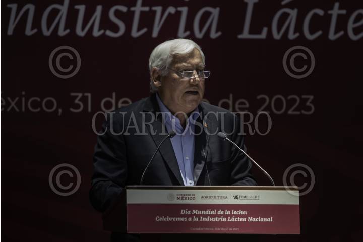 Víctor Manuel Villalobos Arámbula, secretario de Agricultura y desarrollo en el marco del Día Mundial de la Leche encabezó en la muestra conmemorativa con productores de queso y leche. El evento se llevo a cabo en las instalaciones de la secretaria.