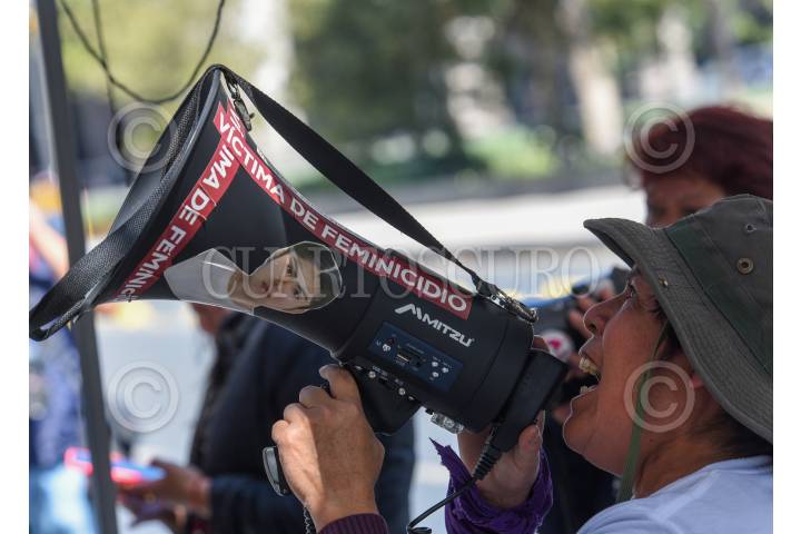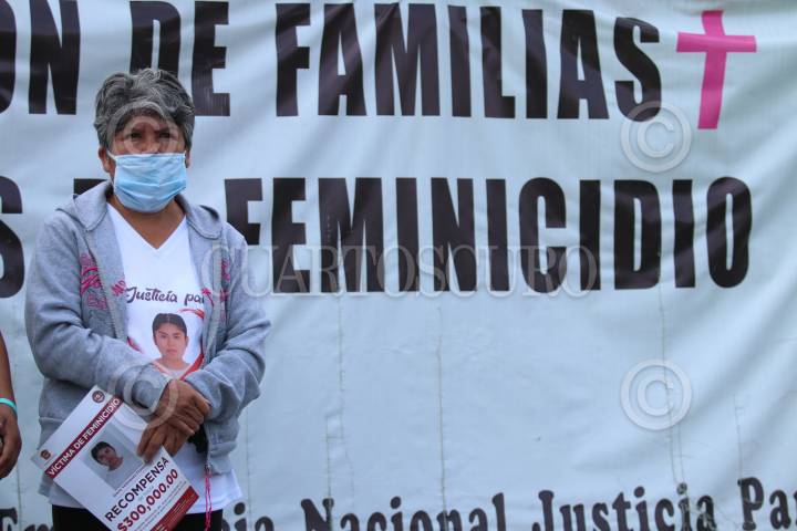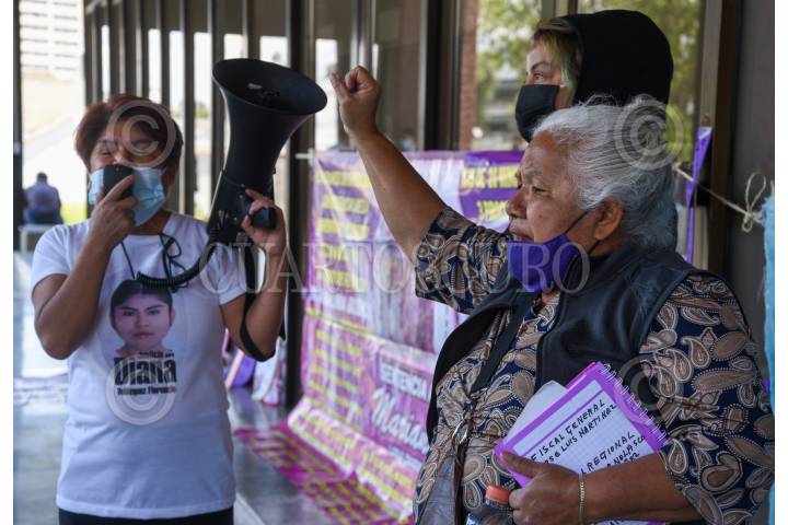 Lidia Florencio, mamá de Diana Velázquez, víctima de feminicidio acudió a la FGJEM en donde se manifestaron familiares de víctimas de feminicidios y colectivos feministas exigiendo justicia.