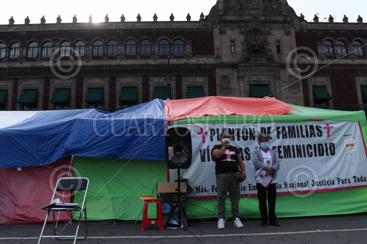 María Antonina Márquez, Laura Curiel, Lidia Florencio y Ana Sosa, madres de Nadia Muciño, Daniela Sánchez, Diana Velázquez y Julia Sosa, durante la inauguración del Mural Itinerante "Hasta Ser Escuchadas", cuyo objetivo es honrar la memoria de mujeres desaparecidas en México y víctimas de feminicidio. Fue instalado en el Salón Benito Juárez de la Cámara de Diputados local.