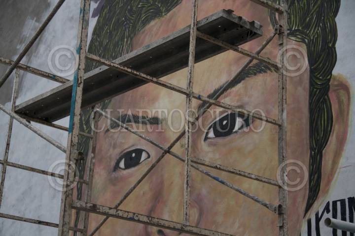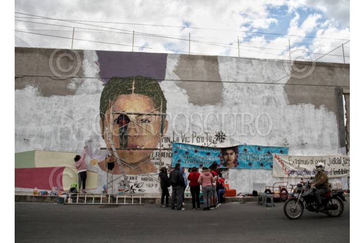 Familiares, artistas locales y colectivas feministas, realizan Mural en memoria de Diana Velázquez, joven víctima de feminicidio a unas calles de la plaza Chimalhuacán donde fue encontrado su cuerpo