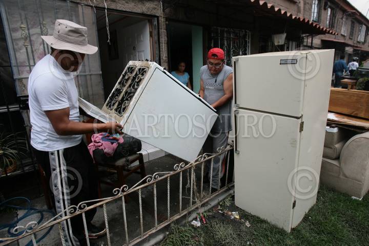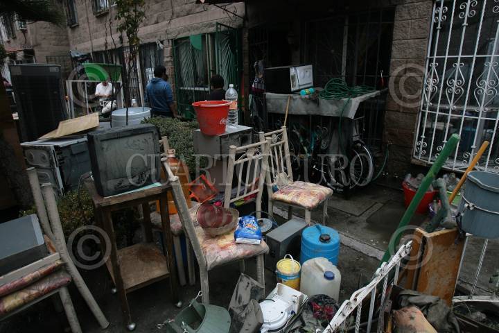 MÉXICO, D.F., 02JULIO2011.- En la unidad habitacional Lienzo Charro en la delegación Iztapalapa, los habitantes continúan rescatando sus bienes después de que sus hogares se inundaran por las lluvias. Para este complejo de vivienda es el segundo año que sufre por las lluvias, por lo que los vecinos exigieron a las autoridades que le dan solución a esta problemática, mientras tanto los aparatos electrónicos que apenas habían sido repuestos otra vez están inservibles. FOTO: GABINO ACEVEDO/CUARTOSCURO.COM