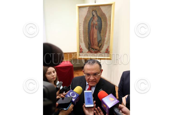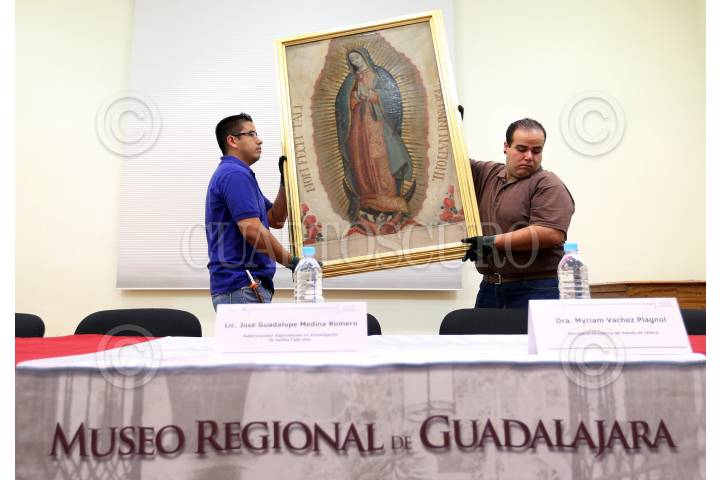 GUADALAJARA, JALISCO, 24FEBRERO20616.- El subprocurador de delitos federales de la PGR, José Guadalupe Medina Romero, entregó el lienzo con la imagen de la Virgen de Guadalupe, que data del año de 1853, el cual fue robado en el año 2010 de la Parroquia de la Santísima Trinidad, en Zapotitlán del Rey. FOTO: PGR /CUARTOSCURO.COM