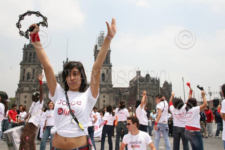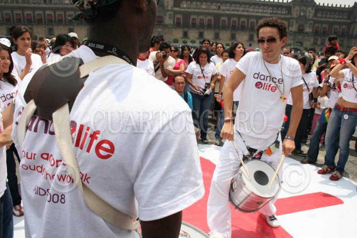 MÉXICO, D.F., 05AGOSTO2008.- Integrantes del grupo "DANCE FOUR LIFE", bailaron al ritmo de samba en la plancha del Zocalo capitalino para manifestar su apoyo a las personas con SIDA asi como promocionar la prevención del VIH. FOTO: RICARDO CASTELAN/CUARTOSCURO.COM