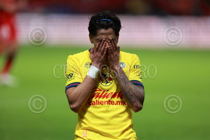 TOLUCA, ESTADO DE MÉXICO, 25MAYO2025. El jugador Kevin Álvarez se lamenta durante el partido de fútbol Toluca vs América correspondiente a la final de vuelta del Torneo Clausura 2025 de Liga BBVA MX, en el Estadio Nemesio Díez. FOTO: EDGAR NEGRETE LIRA/CUARTOSCURO.COM