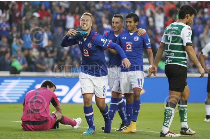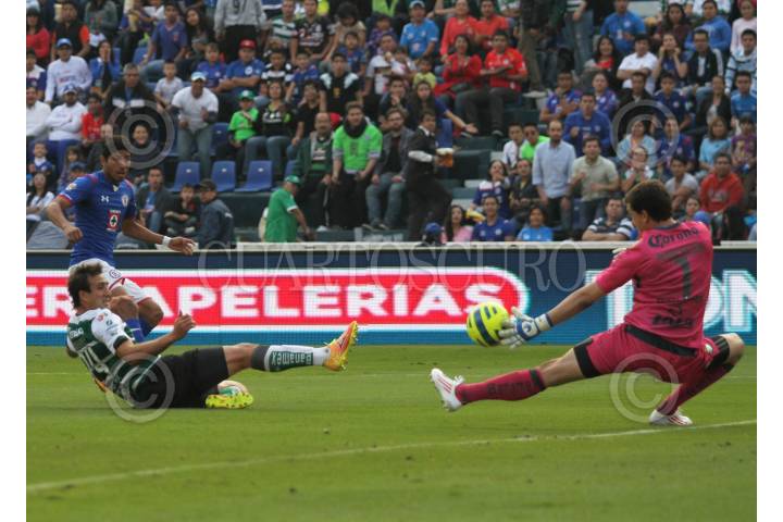 MÉXICO, D.F., 17ENERO2015.- En el segundo juego del torneo clausura 2015 El Cruz Azul recibió en estadio Azul al Santos Laguna. Los celestes ganaron uno por cero. FOTO: ADOLFO VLADIMIR /CUARTOSCURO.COM