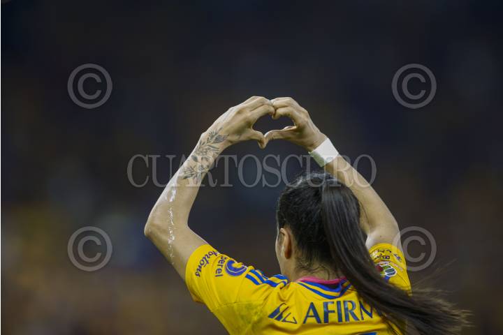 GUADALUPE, NUEVO LEÓN, 25NOVIEMBRE2024.- Lizbeth Ovalle de Tigres Femenil celebra el gol ante las Rayadas, en el estadio BBVA, partido de vuelta de la Final Femenil, Apertura 2024. Segundo tiempo global Rayadas: 2 - Tigres: 3. FOTO: GABRIELA PÉREZ MONTIEL / CUARTOSCURO.COM
