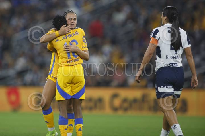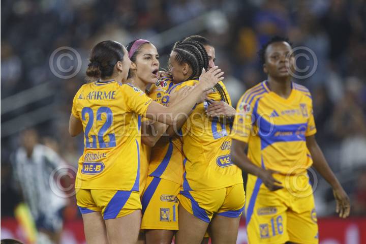 GUADALUPE, NUEVO LEÓN, 25NOVIEMBRE2024.- Jugadoras de Tigres Femenil celebran el gol ante las Rayadas, en el estadio BBVA, partido de vuelta de la Final Femenil, Apertura 2024. Segundo tiempo global Rayadas: 2 - Tigres: 3. FOTO: GABRIELA PÉREZ MONTIEL / CUARTOSCURO.COM