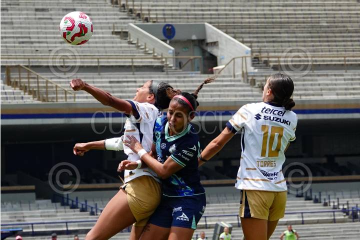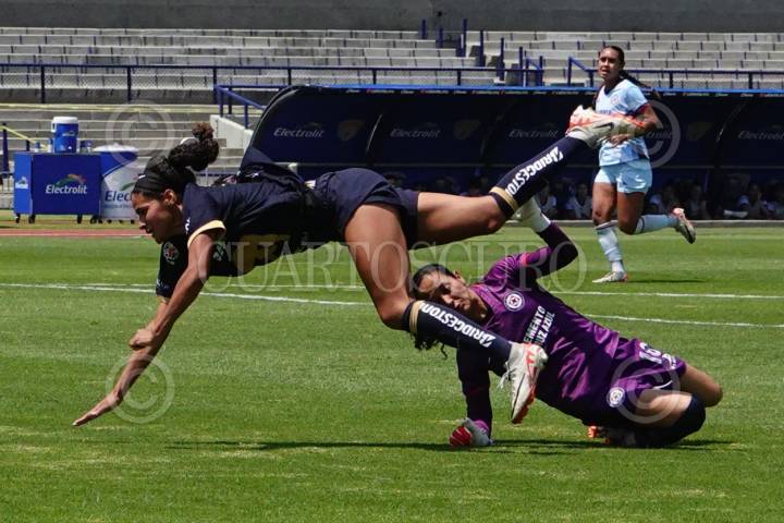 CIUDAD DE MÉXICO, 27JULIO2025.- Pumas mantuvo su inicio perfecto en el torneo al vencer por 1-0 a las Centellas del Necaxa, en duelo correspondiente a la Jornada 3 del Apertura 2025, disputado en el Estadio Olímpico Universitario. El único tanto del duelo contra las necaxistas se produjo al minuto 76, cuando Silvana Flores envió el balón al fondo de las redes, después de una serie de rebotes en el área tras el cobro de un tiro de esquina. FOTO: CLUB PUMAS/CUARTOSCURO.COM