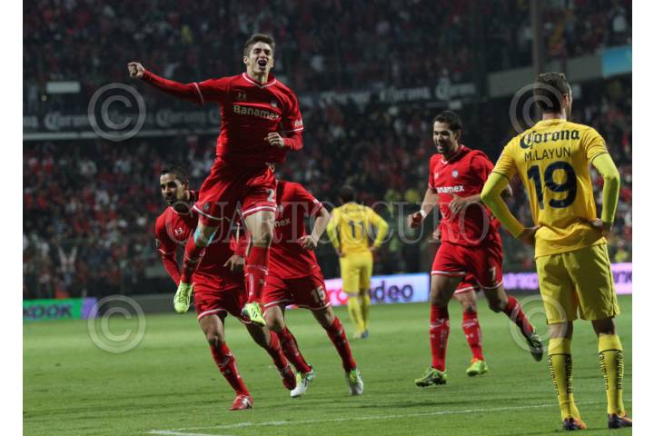 TOLUCA, EDO. MÉXICO, 05NOVIEMBRE2013.- Los diablos rojos del Toluca vencieron a las Águilas del América dos por uno en el inicio de las semifinales del torneo mexicano de fútbol Apertura 2013. FOTO: ADOLFO VLADIMIR /CUARTOSCURO.COM