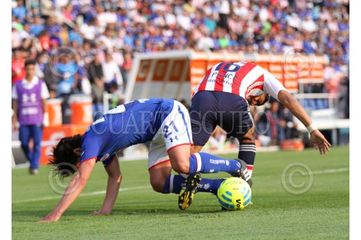 MÉXICO, D.F., 21FEBRERO2015.- Encuentro de fútbol entre Cruz Azul y las Chivas del Guadalajara, como parte de la sexta fecha del Torneo Clausura 2015 del fútbol mexicano. Los tapatíos sacaron el triunfo dos goles a uno. FOTO: ADOLFO VLADIMIR /CUARTOSCURO.COM