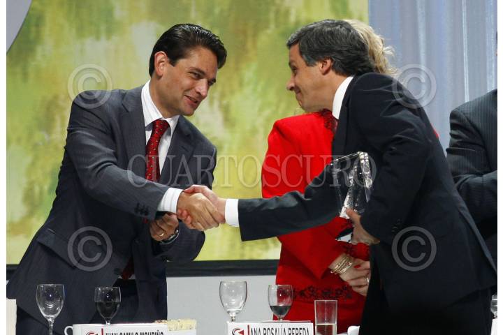 MÉXICO, D.F. 10OCTUBRE2007.- El presidente Felipe Calderón y Enrique Pereda, presidente de la CIRT encabezaron una comida con motivo de la 49 semana nacional de radio y televeisión. La conductora Lili Téllez recibió un reconocimiento. FOTO: PAOLA HIDALGO/CUARTOSCURO.COM