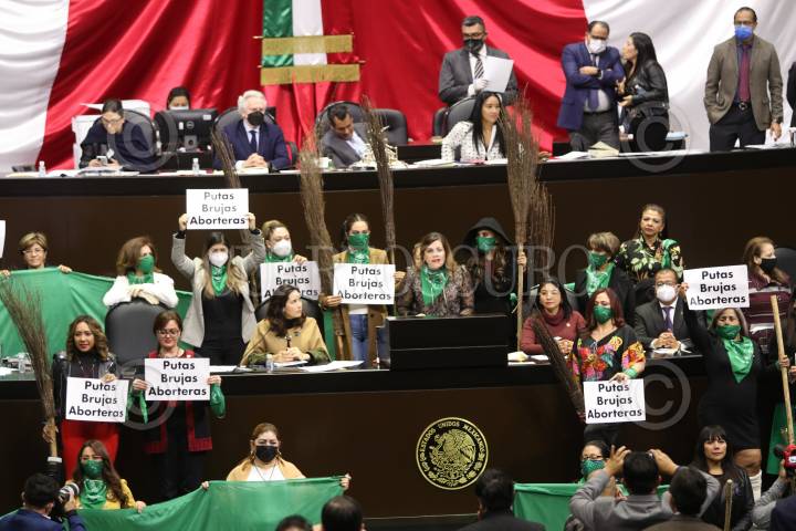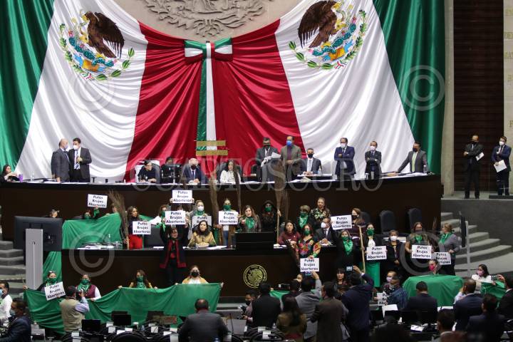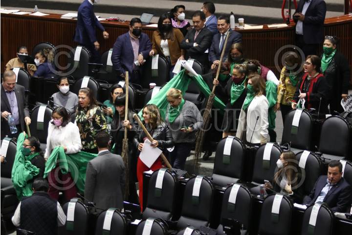 La diputada Lilia Aguilar acompañada de diputadas de la bancada de MORENA protestaron durante la Sesión Ordinaria en el pleno de la Cámara de Diputados