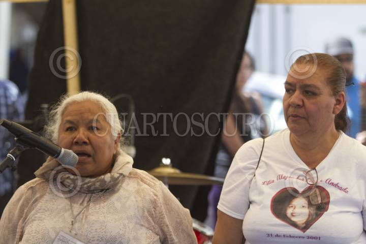 CIUDAD DE MÉXICO, 20FEBRERO2017.- Irinea Buendía, madre de una mujer asesinada por su pareja, durante su mensaje en el acto de protesta político-cultural para pedir justicia por el asesinato de Lilia Alejandra García Andrade, quien desapareció un 14 de febrero de 2001 en Ciudad Juárez, y su cuerpo apareció en un lote baldío el 21 de febrero de 2001, el mitin se realizón afuera de la representación del gobierno de Chihuahua. Norma Esther Andrade, madre de la joven chihuahuense asesinada exigió que el gobierno de Javier Corral no le de la espalda al caso de su hija. FOTO: MOISÉS PABLO /CUARTOSCURO.COM