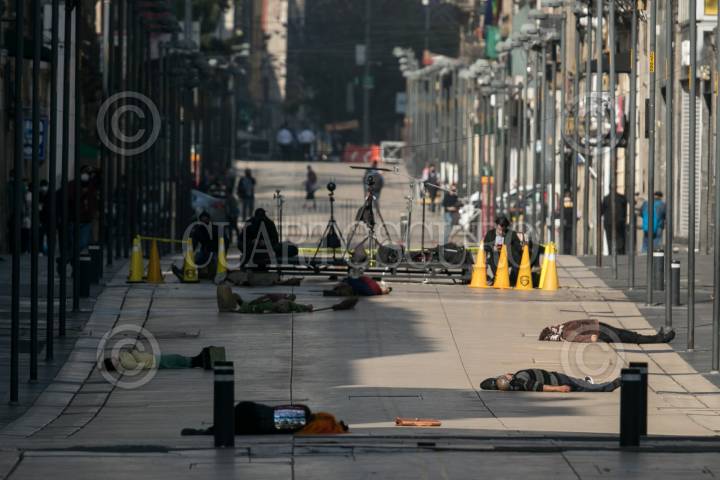Escenas de la nueva producción de Alejandro González Iñárritu, Limbo, grabadas en la calle peatonal Francisco I. Madero.