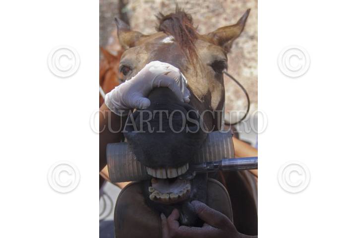 GUADALAJARA, JALISCO, 25MARZO2014.- Esta mañana la Secretaria de Medio Ambiente y Ecología llevo a cabo atención sanitaria de limpieza e higiene corporal como desparasitación, vacunación y limpieza bucal a equinos pertenecientes a dueños de calandrias del centro de la ciudad. FOTO: FERNANDO CARRANZA GARCIA/CUARTOSCURO.COM