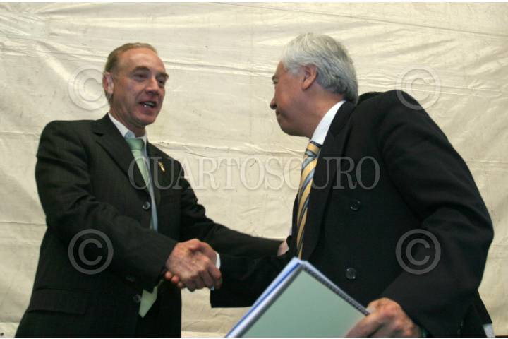 MEXICO,D.F.27SEPTIEMBRE2007.- En la Sociedad Coorperativa de Trabajadores de Pascual se firmo el Acuerdo Social por la Transformación y la Calidad de la Educación en la Ciudad de México. En la imagen, Axel Didriksson Takayanagui, Secretario de Educación del DF y Benito Mirón Lince, Secretario del Trabajo y Fondo al Empleo firmaron el convenio. FOTO: ROCIO ORTIZ/CUARTOSCURO.COM