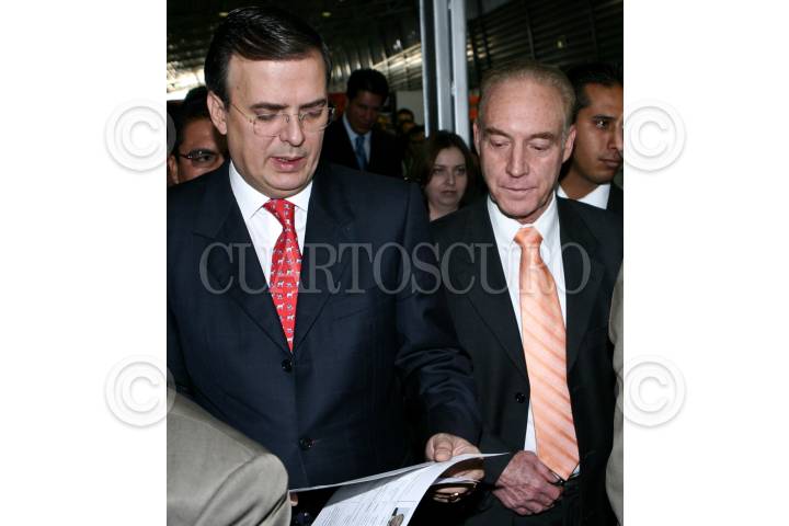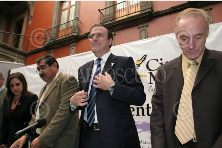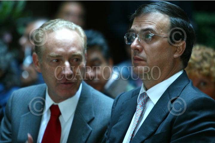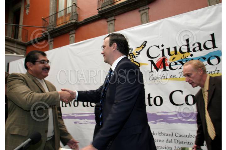 MÉXICO, D.F., 08FEBRERO2007.- Marcelo Ebrard Casaubón, Jefe de Gobierno y Benito Miron Lince, Secretario de Trabajo del DF, durante la instalación del Consejo Consultivo de Fomento del DF, en el Museo de la Ciudad de México. FOTO: MOISÉS PABLO/CUARTOSCURO.COM