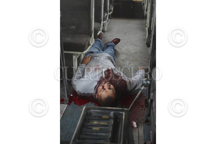 NEZAHUALCÓYOTL, ESTADO DE MÉXICO; 29MAYO2014.- Un presunto delincuente que pretendía despojar a los pasajeros de un Microbús de sus pertenencias, perdió la vida a manos de un hombre que le hizo frente y le quito la vida con un disparo de arma de fuego para luego dase a la fuga, mientras la gente sometía al acompañante del ladrón para entregarlo a la policía. Los hechos, se registraron cuando circulaban en Av. Chimalhuacan a la altura de calle 8 de la colonia Estado de México en este municipio. FOTO: LUIS CARBAYO /CUARTOSCURO.COM