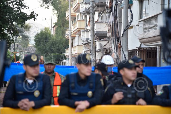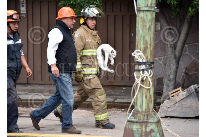CIUDAD DE MÉXICO, 21SEPTIEMBRE2017.- Las labores de rescate en el edificio colapsado en la calle Coquimbo número 911 en Lindavista, se renaudaron para continuar la búsqueda de cuatro personas que continúan desaparecidas. En la imagen un gato fue rescatdo del cuarto piso del edificio. FOTO: MARIO JASSO /CUARTOSCURO.COM