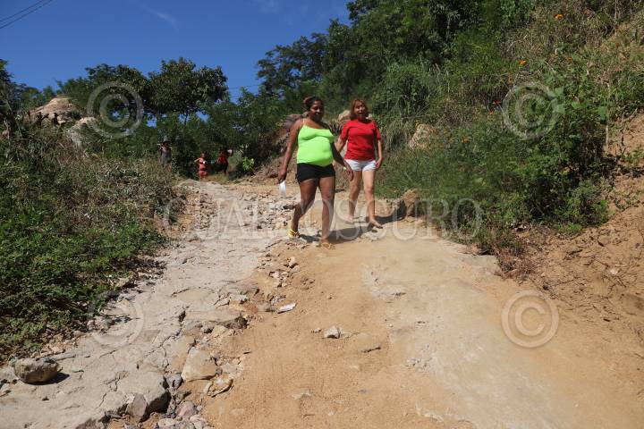 ACAPULCO, GUERRERO, 22NOVIEMBRE2018.- Treinta colonias de alta pobreza del puerto de Acapulco se encuentran asentadas de manera irregular por lo general en las partes altas de los cerros. Esta situación se ha presentado al menos durante los últimos 20 años. Como parte de un programa de regularización de estos predios habitantes de la colonia Lindavista parte alta de la jardín Palmas una de las más conflictivas en la violencia se encuentran esperanzados de que pronto puedan regularizarse para que el gobierno les pueda hacer llegar los servicios básicos ya que carecen de ellos. Jesús Ortiz Sotelo, director general de fideicomiso Acapulco, explicó que en esta colonia viven familias en 280 lotes. Está fue una primera visita de reconocimiento al polígono de colonia Lindavista Altos Jardín Palmas. FOTO: BERNANDINO HERNÁNDEZ /CUARTOSCURO.COM