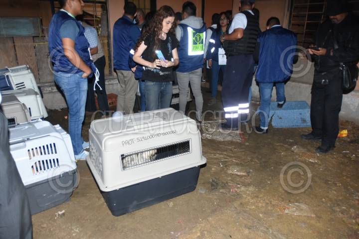CIUDAD DE MÉXICO, 07AGOSTO2019.- Personal de la Fedapur y la PAOT con apoyo de la Brigada de Vigilancia Animal rescataron al menos 70 perros que vivían en hacinamiento en un inmueble ubicado en Matagualpa y Sierravista, en la colonia Lindavista, en la Gustavo A. Madero. FOTO: CRISTIOAN HERNANDEZ /CUARTOSCURO.COM