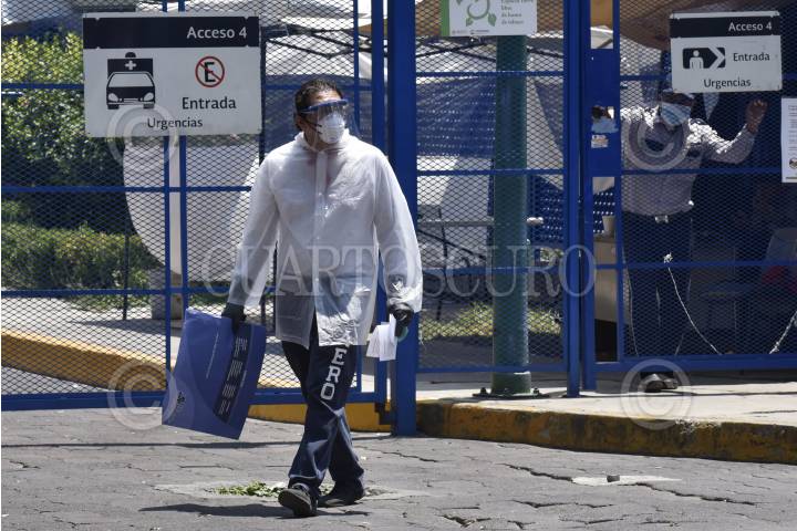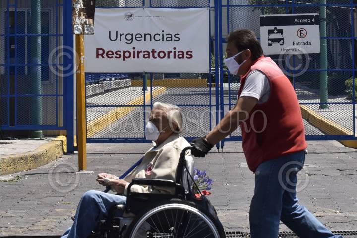 Personas permanecen en las inmediaciones del Hospital Juárez de Mexico para esperar noticias sobre sus familiares internados por covid-19.