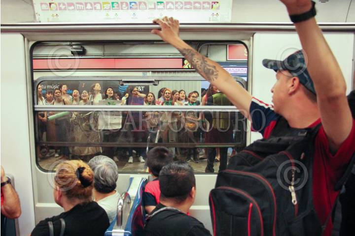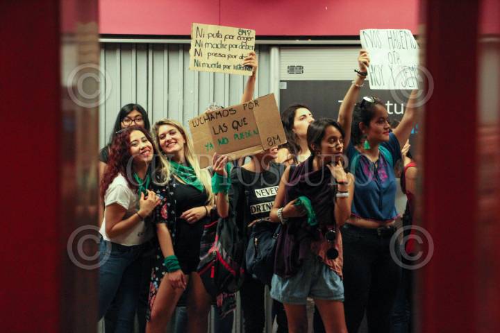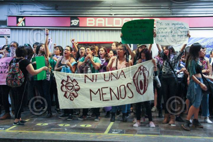 CIUDAD DE MÉXICO, 08MARZO2019.- Distintos grupos de colectivos feministas, se manifestaron en la estación de Balderas de la línea rosa del metro de la ciudad, exigiendo a las autoridades un alto a los acosos e intento de secuestros que han ocurrido en distintos puntos de la red del transporte, esto en el marco de del Día Internacional de la Mujer. FOTO: ROGELIO MORALES /CUARTOSCURO.COM